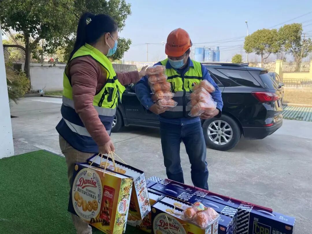 张越董事长了解到跃港搅拌站职工物资匮乏后,立即安排部署,总裁事务部副总经理张焕荣一个电话接着一个电话,动员各方力量、挖掘各种资源,积极调配应急防疫物资,经过多方努力,张焕荣和驾驶员陈万泰经过“层层关卡”,成功将口罩、防护服、消毒液等防疫物资送至跃港拌站,解燃眉之急,令拌站现场人员深受感动。