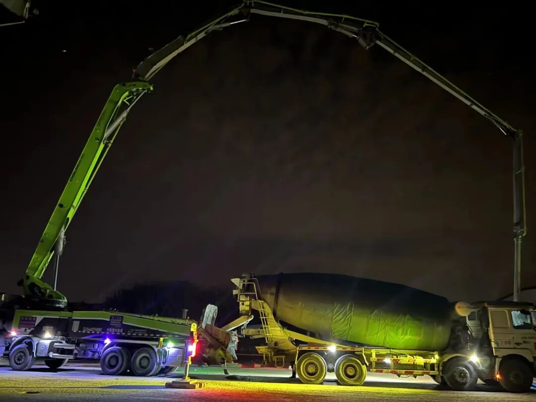 材五公司党总支副书记、总经理景逸赶赴现场,直至深夜仍然在现场关注着每个混凝土供料点位的情况,“原材料要盯紧了……另外两个拌站让他们随时待命……”景逸关注着每一个细节,只为确保各时间节点混凝土的足量保供。